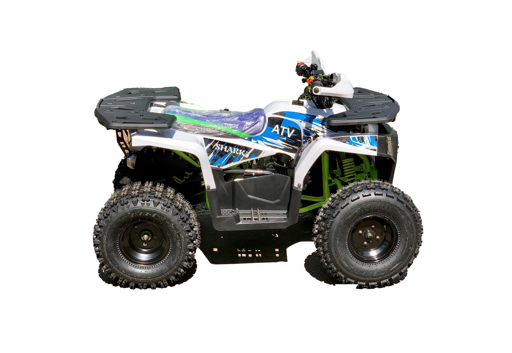 Квадроцикл Motoland 125 SHARK - новинка 2022 года. Техника оснащена двигателем на 125 кубических сантиметров и автоматической трансмиссией.Motoland 125 SHARK можно начинать осваивать уже с 6 лет под присмотром взрослых (в комплекте пульт родительского контроля, чека безопасности и ограничитель курка газа) и самостоятельно - с 12 лет.Комплектация:- Передняя линзованная фара (ближний, дальний)
