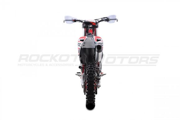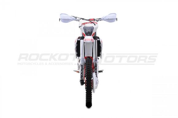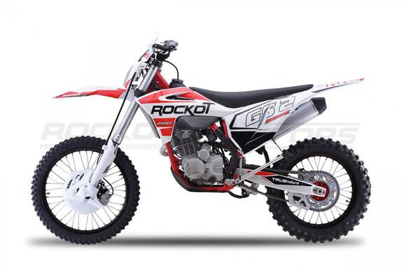 Вторая, обновленная версия эндуро мотоцикла ROCKOT GS 2 Origine.GS 2 Origine - полноразмерный эндуро мотоцикл, удовлетворяющий вкусу и потребностям как новичков, так и опытных райдеров.Мотоциклы ROCKOT серии GS, обрели высокую популярность, благодаря применению в плане дизайнерского и практического решения - пластика модели GASGAS.На белый пластик, нанесена графика в белой, красной, черной расцветке. Выбранное цветовое решение, придает мотоциклу броский, стильный дизайн, так характерный для внедорожной техники. Каждая деталь мотоцикла, дополняет общую концепцию дизайна.Обода колесных дисков окрашены в черный цвет, а красная графика нанесенная в виде наклеек, защитит ЛКП ободов от царапин. Алюминиевые ступицы окрашены в яркий, красный цвет.На черной раме установлена защита красно-черного цвета. Также, в красном цвете представлены: CNC крышка топливного бака и обслуживаемый топливный фильтр. Защита рук, складные, алюминиевые рычаги и траверсы окрашены в черный цвет.Предыдущая версия эндуро мотоцикла ROCKOT GS 2 Origine оснащалась двигателем CB250-F 172FMM-3A. Обновленный GS 2, обрел новый двигатель PR250 172FMM-5, с балансирным валом и пятиступенчатой КПП.Балансирный вал, значительно снижает уровень вибрации от двигателя, что ранее было единственным минусом двигателя CB250-F. Особенностью двигателя, можно считать то, что мощность двигателя осталась прежней - 21 лошадиная сила.За образование топливной смеси и ее подачу в двигатель, отвечает производительный карбюратор PE30. Повышает характеристики мощности и крутящего момента - обновленный “PowerBomb” увеличенного объема. Коробка передач - пятиступенчатая, с многодисковым сцеплением.ROCKOT GS 2 Origine построен на новой раме S8, которая является улучшенной, доработанной версией популярной рамы K8, аналогичной по геометрии рамам “австрийской троицы”. Рама производится из труб шестигранного сечения хром-молибденовой стали, которая является очень прочной и легкой. Подрамник производится из алюминия. Геометрия рамы, благодаря правильно выверенному центру тяжести и углу наклона вилки - способствует наилучшей управляемости устойчивости мотоцикла на низкой скорости.Устанавливаемая на мотоцикл ROCKOT GS 2 Origine подвеска известной фирмы “KKE” - делает мотоцикл одним из наиболее подходящих для проезда по сложным эндуро маршрутам. Спереди расположена телескопическая вилка перевернутого типа, длиной - 940 мм и толщиной рабочего штока - 48 мм. Конструкция вилки - регулируемая с картриджем открытого типа. Данная конструкция подвески отлично проявляет себя в эндуро, в том числе и в режиме гонки.Сзади установлен усиленный маятник из алюминия, который соединен с задним моноамортизатором, посредством системы рычагов прогрессии. Моноамортизатор “KKE” длиной 470 мм, регулируется на скорость сжатия, скорость отбоя и преднатяжение пружины. Широкий диапазон регулировки передней и задней подвески, позволит точно настроить ее работу под вес и стиль езды каждого райдера. Система прогрессии, обеспечивает равномерную, мягкую работу и увеличивает длину рабочего хода подвески.