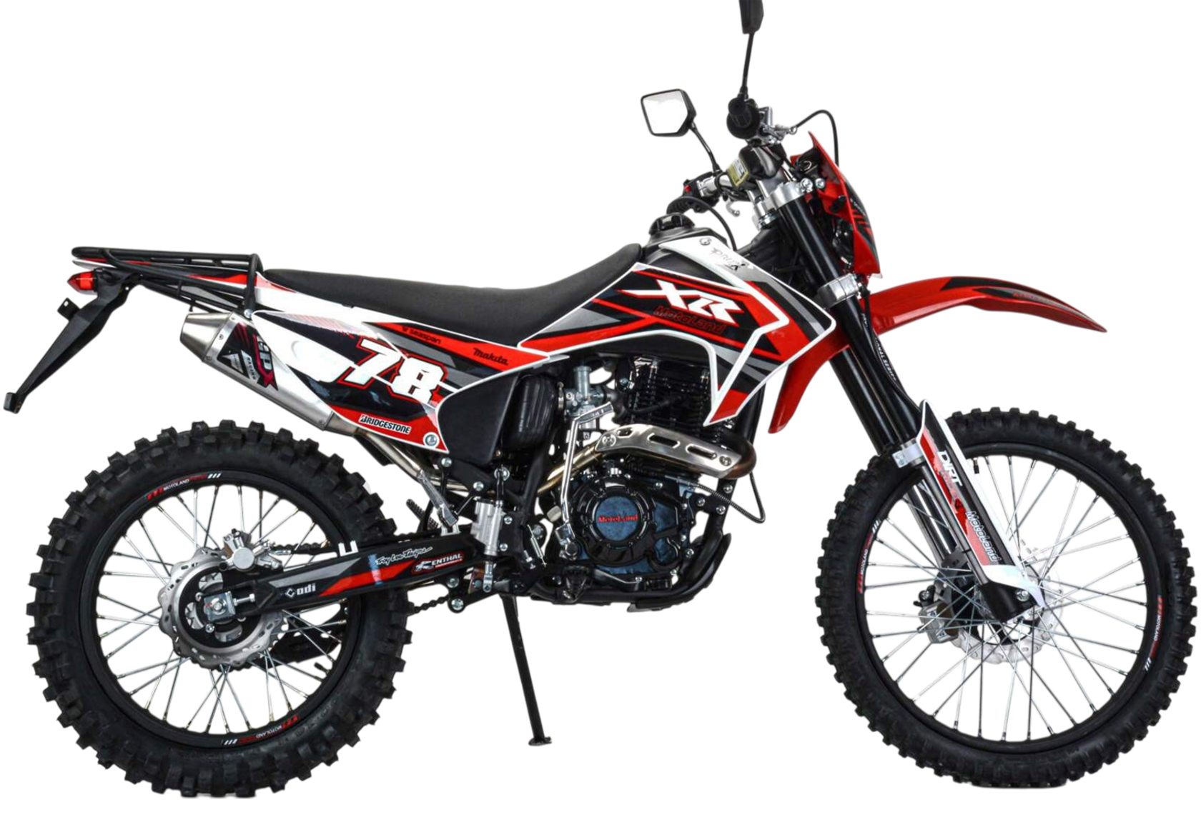 Motoland XR 300 Lite (175FMM) с ПТС – бюджетный короткобазный кроссовый мотоцикл с уменьшенной высотой по седлу и мощным двигателем 175FMM на воздушном охлаждении 300 cc мощностью 25 лс.Ключевыми особенностями мотоцикла являются его компактные габариты, стальная рама, современная подвеска с предустановленными настройками с завода, мощные тормоза, стальные колесные диски, наличие электростартера и кик стартера, прямоточный выхлоп, обвес из АБС пластика, LED оптика с возможностью переключения ближний \дальний, заниженное комфортное сидение.- ПТС версия с зеркалами и повортниками.- Двигатель ZS 175FMM – 300 кубовый «тяговитый» двигатель с высокими показателями крутящего момента и мощностью 25 лс, на воздушном охлаждении.-карбюратор PZ 30 обеспечивает бесперебойную работу двигателя в любом диапазоне температуры и высоты.- Стальная рама обеспечивает солидный запас прочности, ресурс и ремонтопригодность- Энергоемкая подвеска с заводскими настройками гарантирует уверенное преодоление неровностей