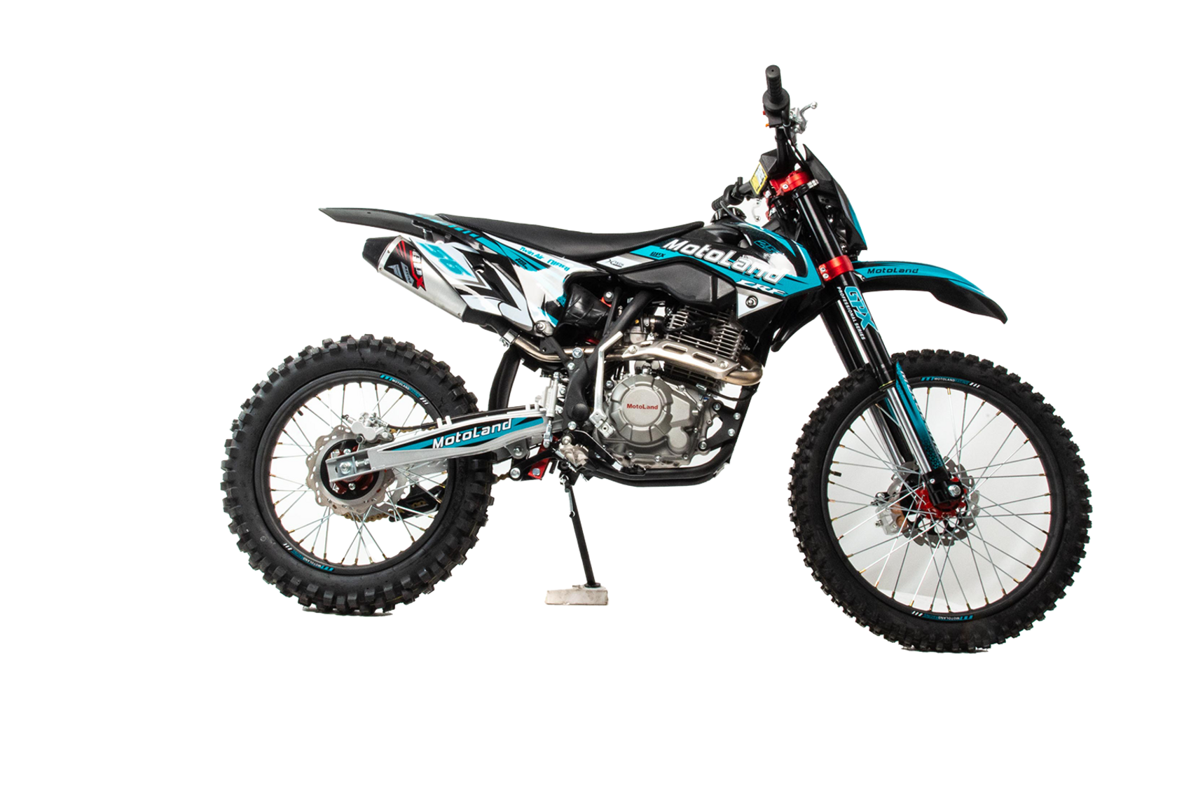 Мотоцикл Motoland CRF 250 оснащен топовым двигателем 172 FMM с карбюратором NIBBI PE 30 ! Идеален для езды по бездорожью, т. к. имеет отличную проходимость на песке и мягком грунте.Объем двигателя 250 см3 и мощность 21 л. с. обеспечивает хорошую динамику разгона и высокую максимальную скорость. Коробка передач механическая, пятиступенчатая. Карбюратор NIBBI PE 30 оснащен резиновым патрубком, что обеспечивает снижение вибрации. Объём топливного бака 6 литров. Передняя подвеска — телескопическая, не регулируемая, перевёрнутого типа. Вилка GPX Professional оснащена клапанами, для стравливания избыточного давления, что позволяет значительно повысить ресурс работы сальников. Задняя подвеска с прогрессией, амортизатор имеет регулировку отбоя и преднатяг пружины. Рама мотоцикла полудуплексная, стальная. Сиденье кроссовое, с противоскользящим покрытием. Обода колес спецованные, стальные, черного цвета с алюминевыми, окрашенными литыми ступицами. Покрышки 80/100 "21 110/100 "18 с мощными грунтозацепами обеспечивают превосходное сцепление с грунтом и позволяют контролировать управляемость на нестабильных поверхностях кроссовых трасс. Размер заднеего колеса — 18 дюймов (450 мм), переднего — 21 дюйм (530 мм). Передние и задние тормоза дисковые, с надёжными двухпоршневыми суппортами. Руль GPX переменного сечения с алюминевыми литыми траверсами, выдерживает значительные нагрузки, в том числе при падениях. Высота по рулю и седлу позволяет чувствовать себя удобно как людям среднего, так и большого роста. Мотоцикл Motoland CRF 250 оснащён светодиодной фарой головного света. Система зажигания электронная (CDI). Запуск двигателя комбинированный ножным кикстартером и электростартером. Так же в комплекте есть щиток для номера, который ставится вместо фары при необходимости.