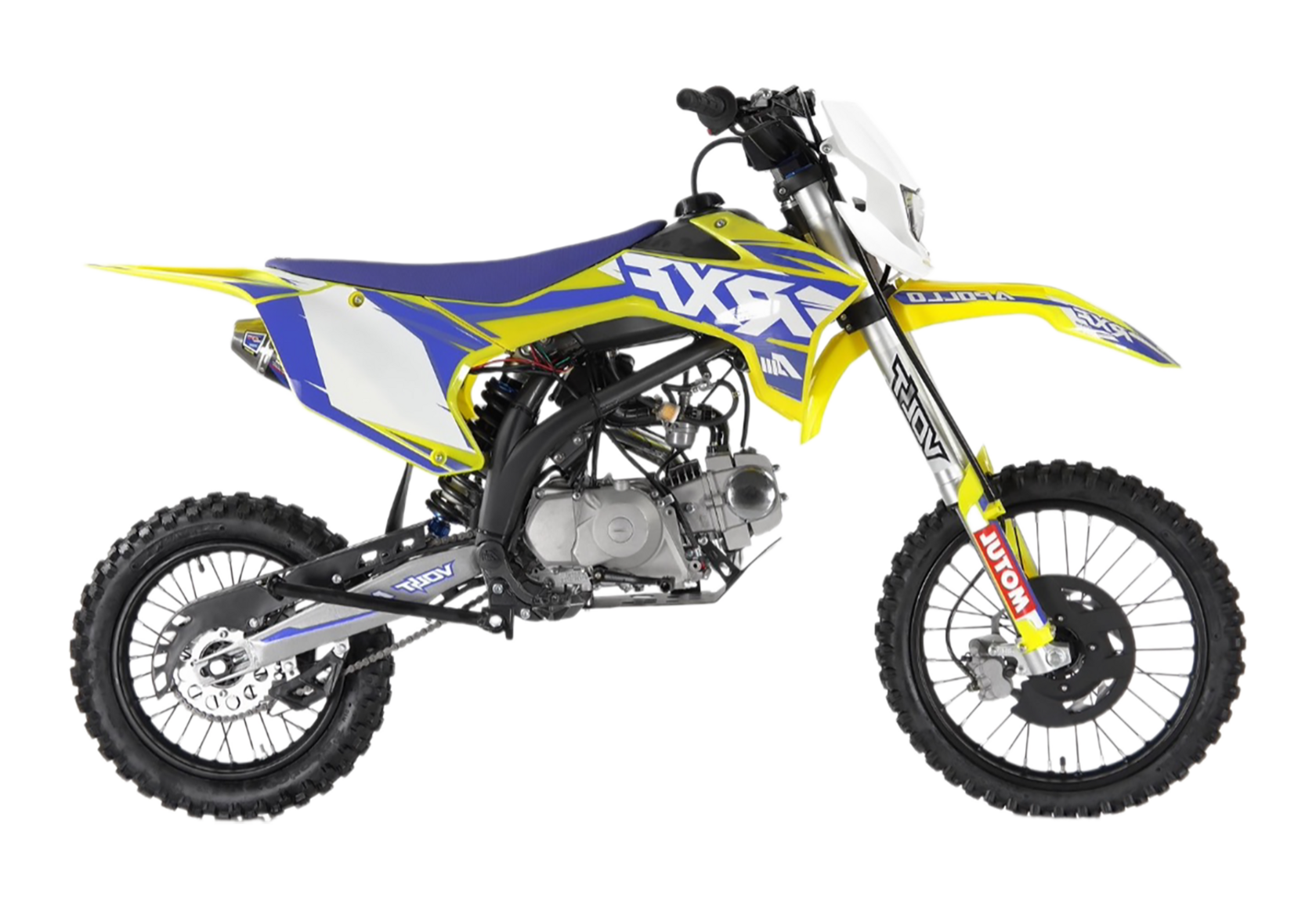Представляем Вам обновленный RXF Freeride 125 LE 17/14. Модель обзавелась фарой, электростартером и также получила обновленный дизайн графики.RXF Freeride 140 L – по праву считается отличным выбором из линейки Freeride. Мотор YX 125 с электростартером достаточно мощный и тяговитый, чтобы не дать скучать опытным райдерам, но в тоже время достаточно покладистый и безопасный для новичков. На обновленном Freeride теперь есть фара головного света, которая идет в комплекте с питбайком.
