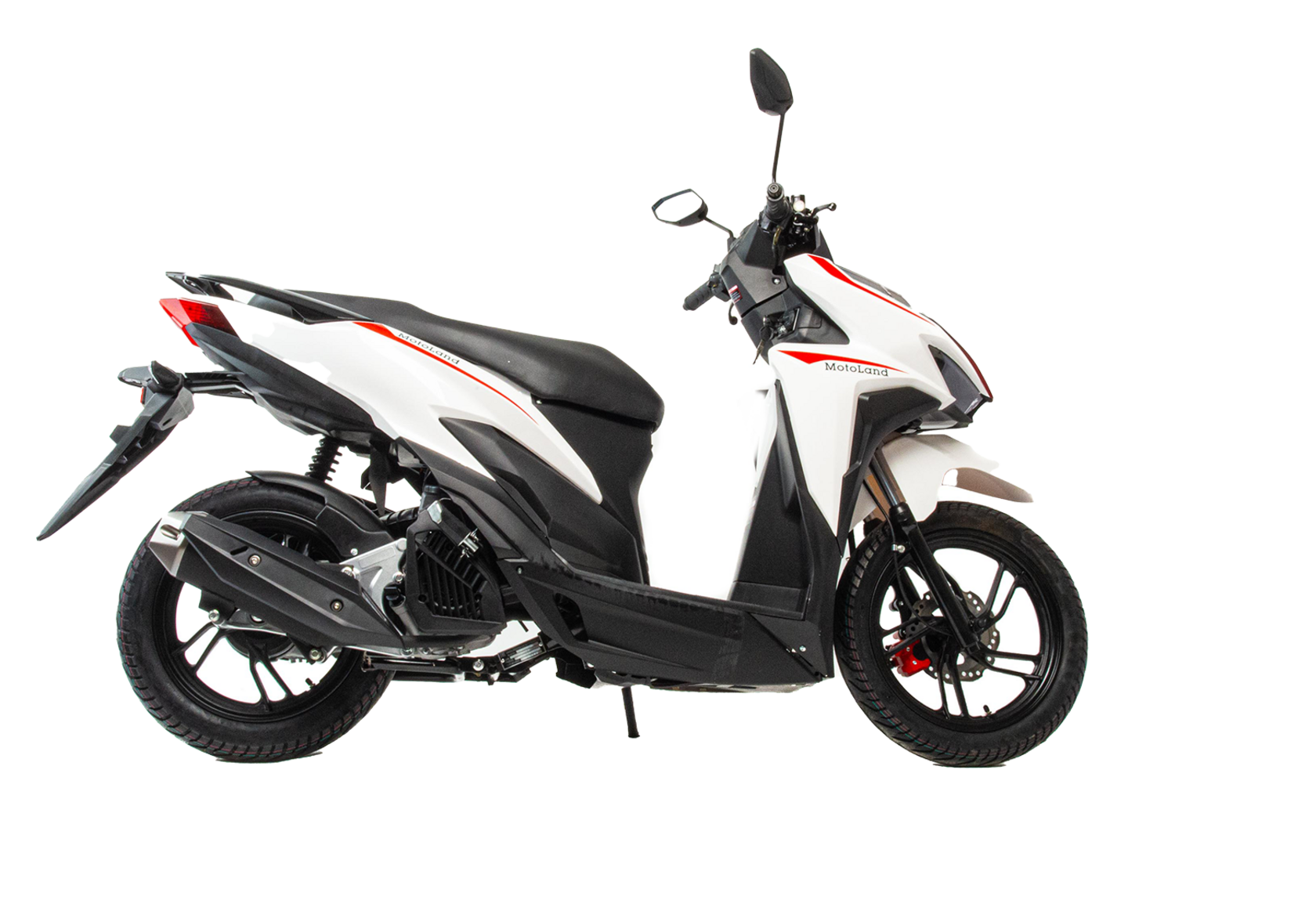 Скутер MotoLand VR 150 - это полноценная эргономичная модель из линейки двухместных скутеров, предназначенный для комфортного передвижения одному, либо вдвоем, как в городских условиях, так и при заездах на дальние расстояния.Уверенности придает мощный двигатель 157 QMK с вариатором, способным держать крейсер в 90 -100 км/ч и на обгонах разгоняться до 120 км/ч. Скутер снабдили множеством новинок: инверсионной LСD панелью приборов, иммобилайзером, выраженными современными светодиодными передними и задними фонарями, новейшей задней подвеской на моноамортизаторе, стояночным тормозом на ручке, широким комфортным сиденьем с защитным металлическим обтекателем по задней части, который в свою очередь еще выполняет функцию ручки-держателя для пассажира, увеличенными 14" колесами на литье и большими передними карманами-бардачками (кофрами). Для удобства, у замка зажигания расположена кнопка открывания бардачка. Ручки руля с грузиками. Также на скутере установлен глушитель нового дизайна, с прямоугольным диффузером и боковой защитой, передние дисковые гидравлические тормоза, усиленные откидные подножки пассажира, расширенные зеркала и большое заднее крыло под номер.
