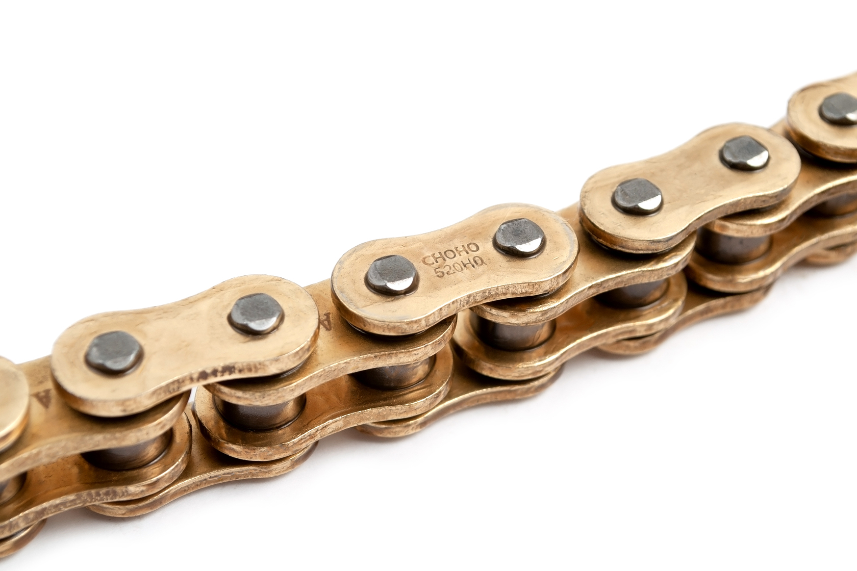 • Сальниковая усиленная приводная цепь CHOHO 520HO GOLD на 120 звеньев для мотоциклов и питбайков с объёмом двигателя 125–450 см³. Высокая прочность, увеличенный срок службы и стойкость к износу благодаря сальниковой конструкции и защитному золотому покрытию.