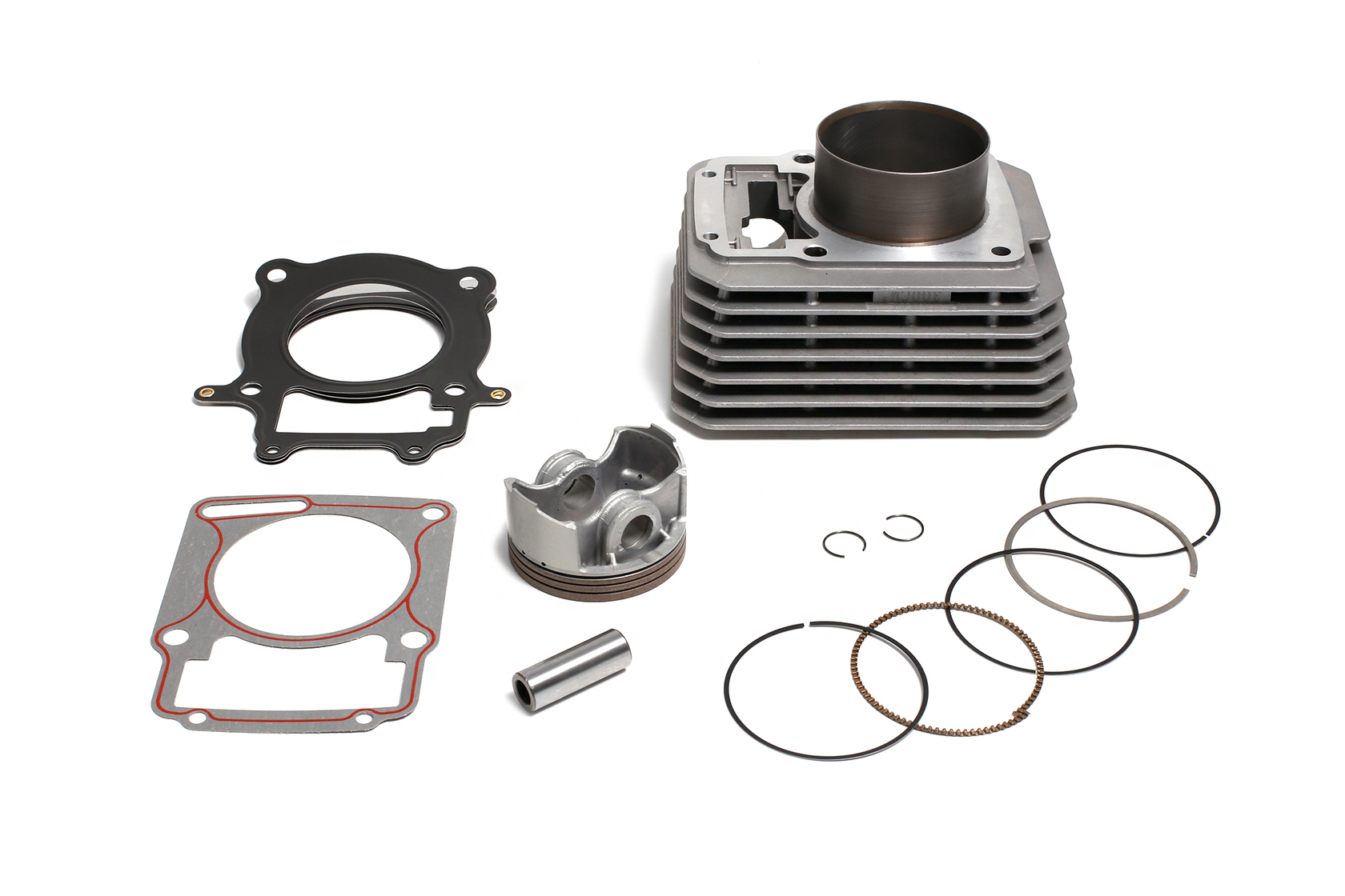 Полная комплектация — всё для замены или тюнинга в одной коробке: поршень, кольца, цилиндр, прокладки, стопорные кольца, прокладки.